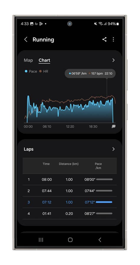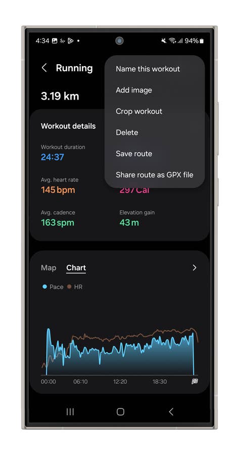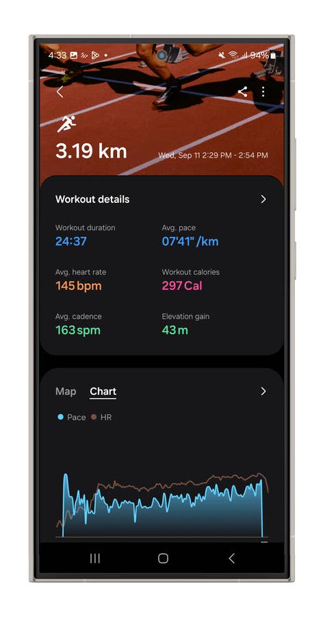 For this example, I used a running session after updating One UI, along with the Health and Wear apps. While it’s tricky to run with the Galaxy Ring—since sweat makes the ring slip around—you can still manage. It tends to slide off your index finger, and with no strap to adjust it, there’s not much you can do except ensure it’s positioned correctly, with the notch at the base of your finger.