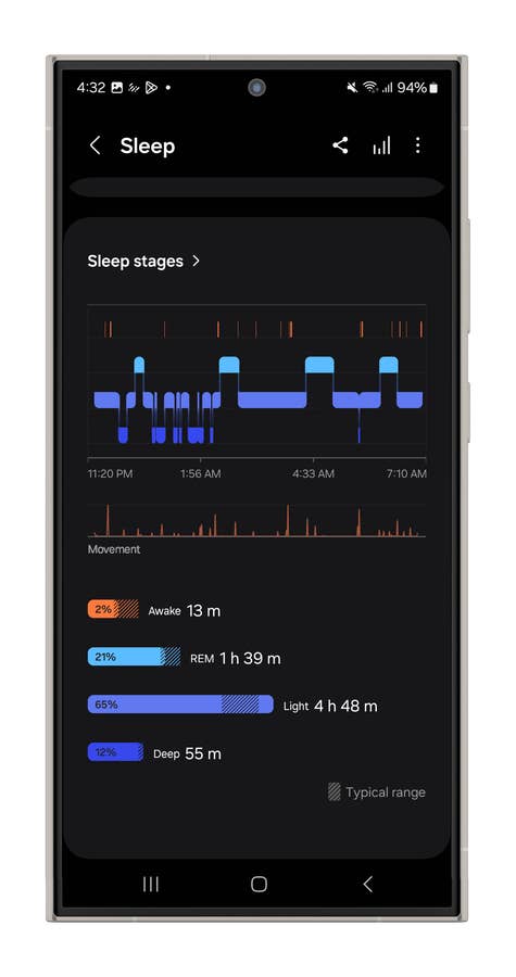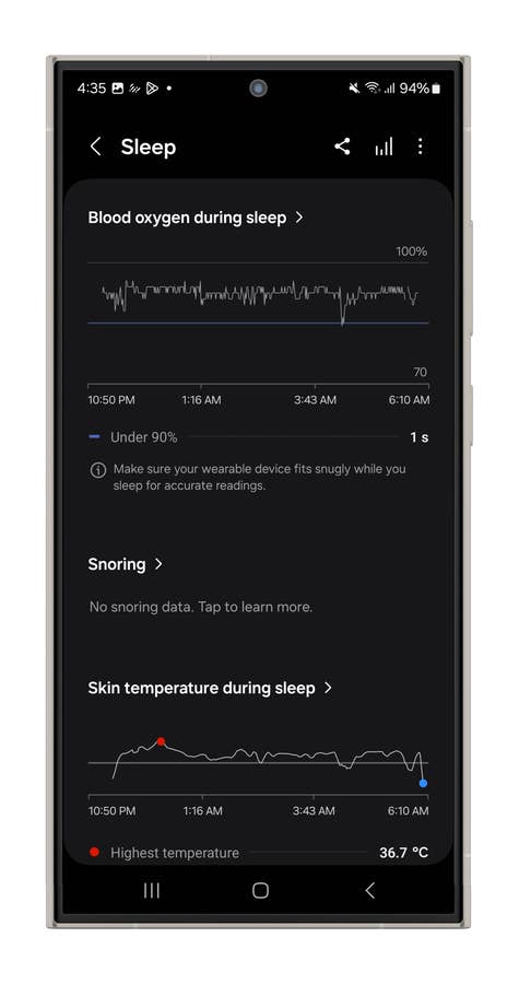 Devices running the latest One UI 6.1, like the Galaxy S24 Ultra, have actually delivered fairly reliable sleep stage tracking in my experience. Plus, Samsung throws in an AI-powered sleep coach that needs about three weeks of data to generate insights into your sleep habits. It’s cool to see what it has to say, but don’t expect it to revolutionize your sleep routine. Still, it’s a nice little educational tool.