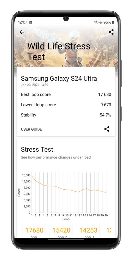 When it comes to graphics benchmarks, the Samsung Galaxy S24 Ultra fared better than Apple’s iPhone 15 Pro Max and its A17 Pro chip. However, in terms of stability, Samsung lags behind Apple. I didn’t notice any visually noticeable thermal throttling during my review. When it comes to CPU computational capabilities, Apple still has the upper hand.