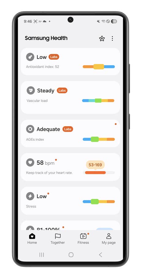 In 2025, Samsung introduced new experimental features that made further use of these sensors: vascular load during sleep and the antioxidant index. These belong to what Samsung calls “Labs,” meaning they are still in development and should be viewed as awareness tools rather than diagnostic ones. They may be interesting to think about, but no serious clinician would use them as medical evidence.