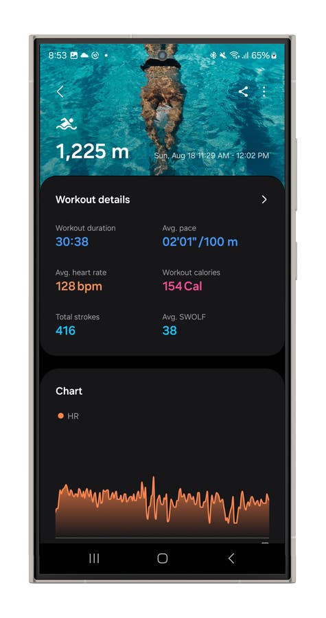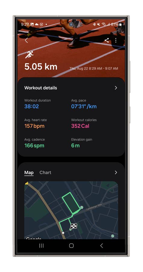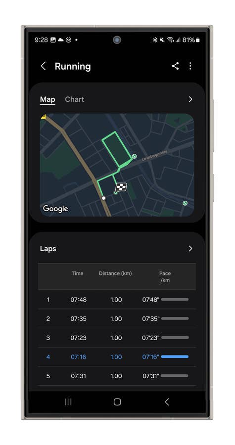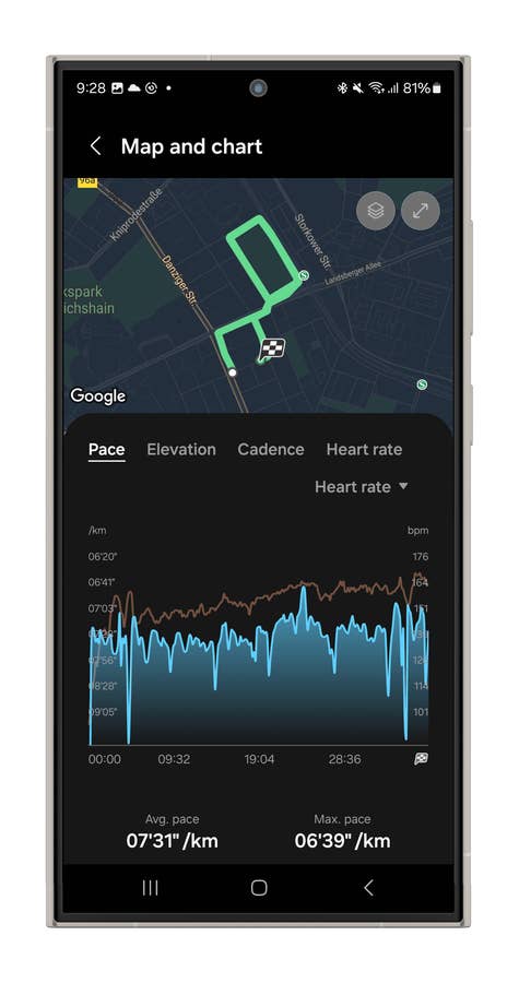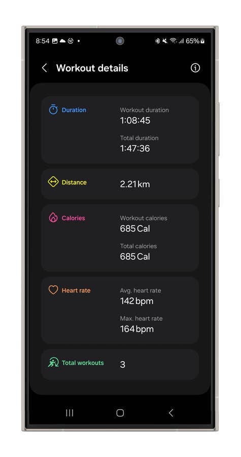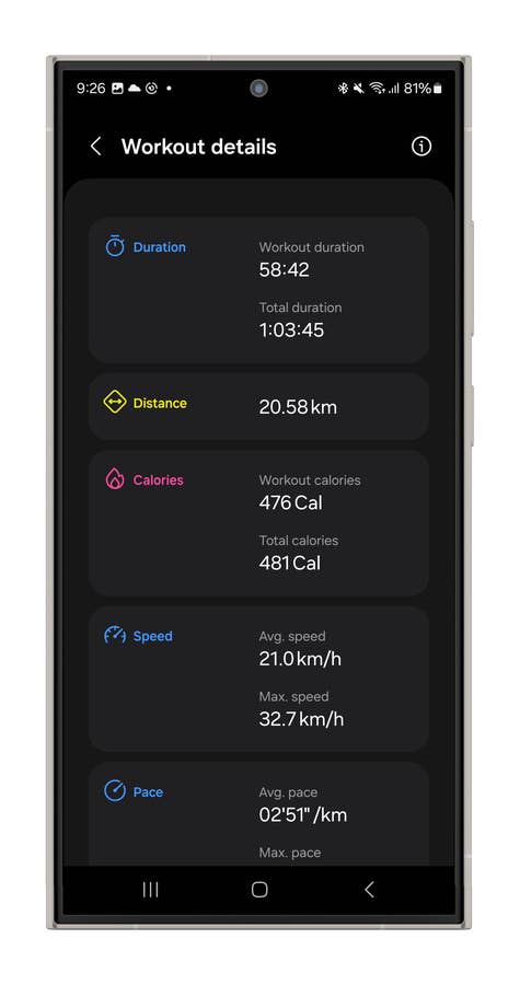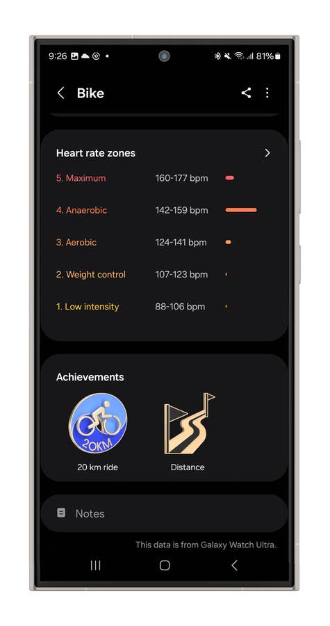 While I enjoy long-distance rides, I’m more of a weekend cycling enthusiast. That said, I found Samsung’s data overview to be fairly straightforward. You get essential metrics like distance, maps, average and maximum speed, elevation, heart rate zones, laps, and calories burned.