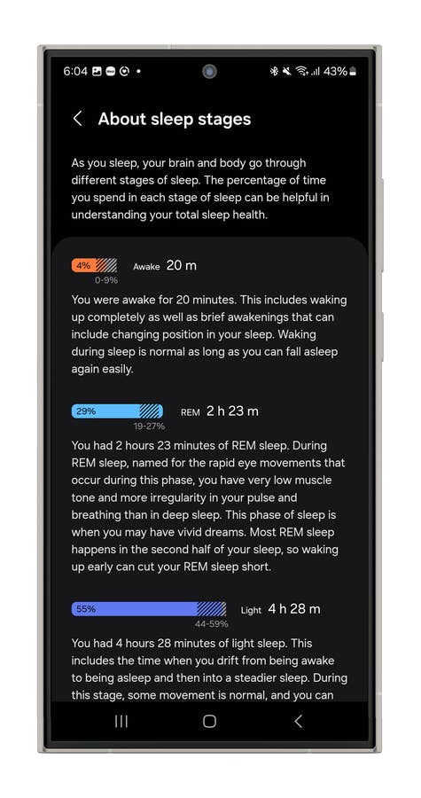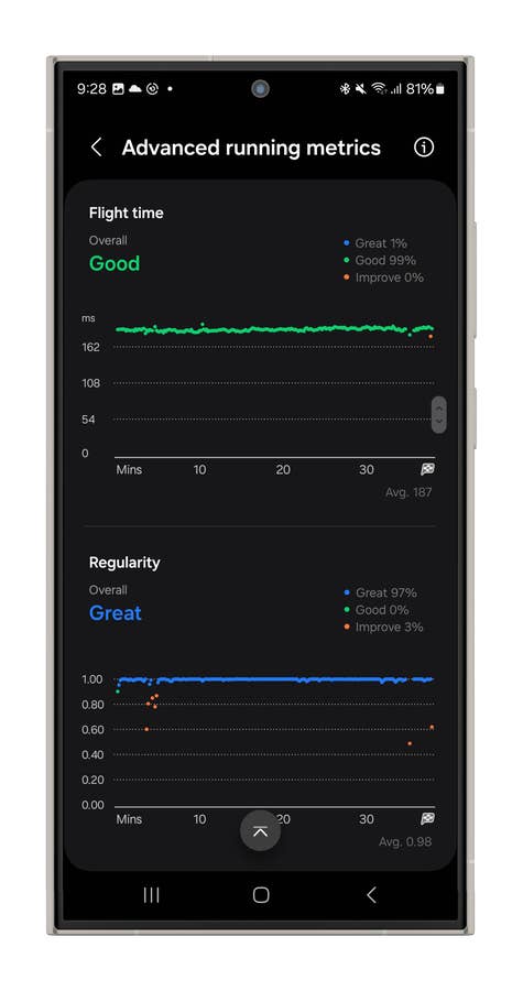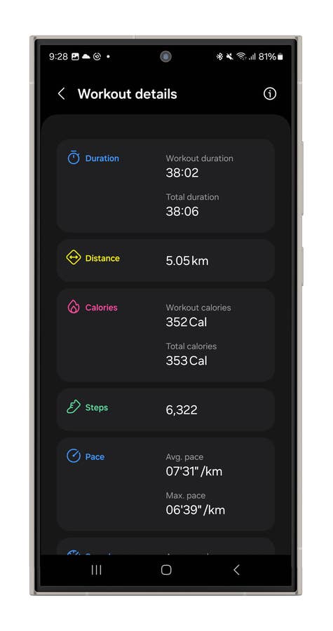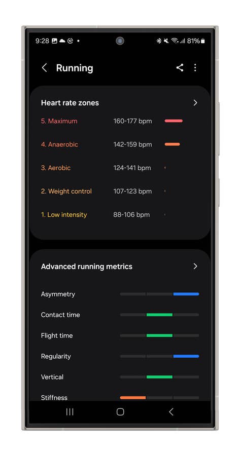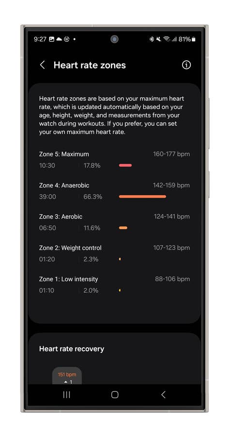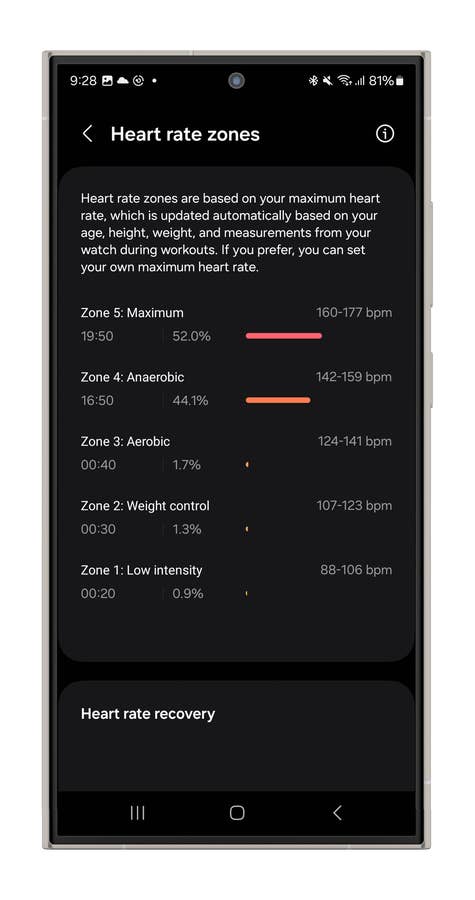 What I didn’t love about Samsung’s approach is how it can be a bit misleading when it comes to recovery. Instead of offering constructive insights, Samsung opted for a somewhat judgmental icon—a happy or sad face—in the Health app UI, which can make you feel like you’re not doing enough on days when your body needs rest.