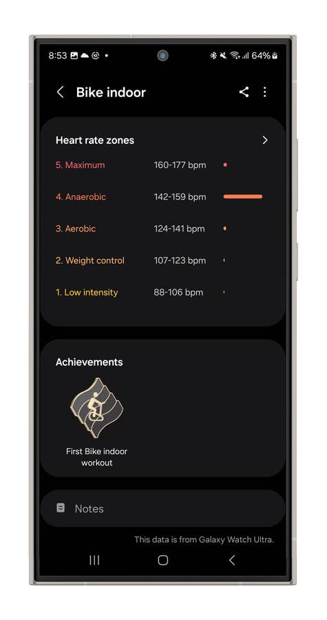 However, if you have a power meter connected to the Samsung Health app, you can measure and track Functional Threshold Power (FTP), which is critical to enhance training effectiveness. Unfortunately, I don’t have a power meter, but there are YouTube tests demonstrating how it works. Many of these tests highlight that the user experience isn’t as optimized as it could be, though it’s still possible to set it up.
