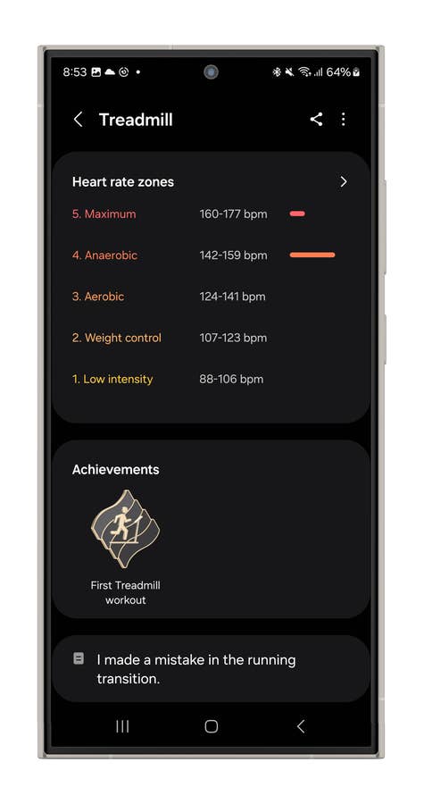 In my experience, I encountered a minor hiccup with the first transition, which I didn’t execute correctly. As a result, 20 minutes of my 30-minute run didn’t appear in the correct sequence. While the system didn’t allow me to edit the transition time afterward, it still counted the full run time for that day.