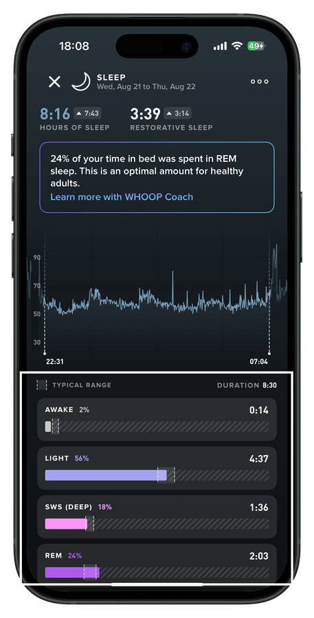 In contrast, I preferred Whoop’S approach, which gives you a more nuanced overview after a tough day and clearly explains why you should dial back the intensity while your body recovers from the high strain.