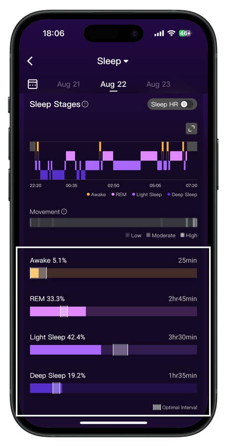 When it comes to sleep metrics, the accuracy doesn’t quite match the heart rate performance. Sleep tracking is notoriously challenging for smartwatches and fitness trackers. In a comparison between the Watch Ultra, Whoop 4.0 (review), and RingConn Gen 2 Smart Ring (review), the results varied significantly. While they occasionally aligned on deep sleep stages or REM stages, discrepancies were frequent.