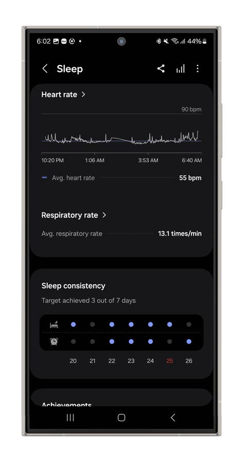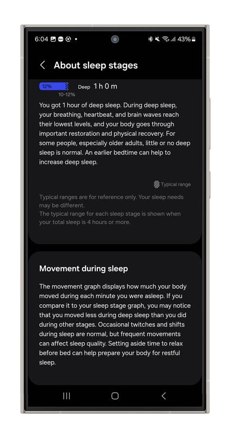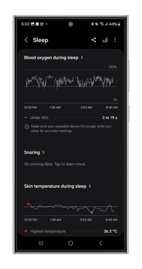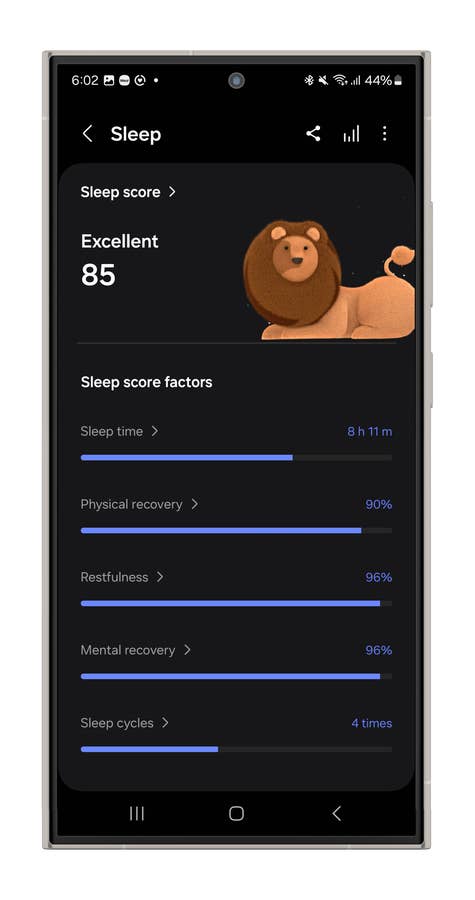 While I’ve noticed some inaccuracies in sleep metrics, the system does seem to improve over time as it learns your routine. Samsung also provides a range of insights and a general analysis of your sleep quality. Additionally, there’s a sleep coach feature that offers tips on daily habits to help you optimize your sleep.