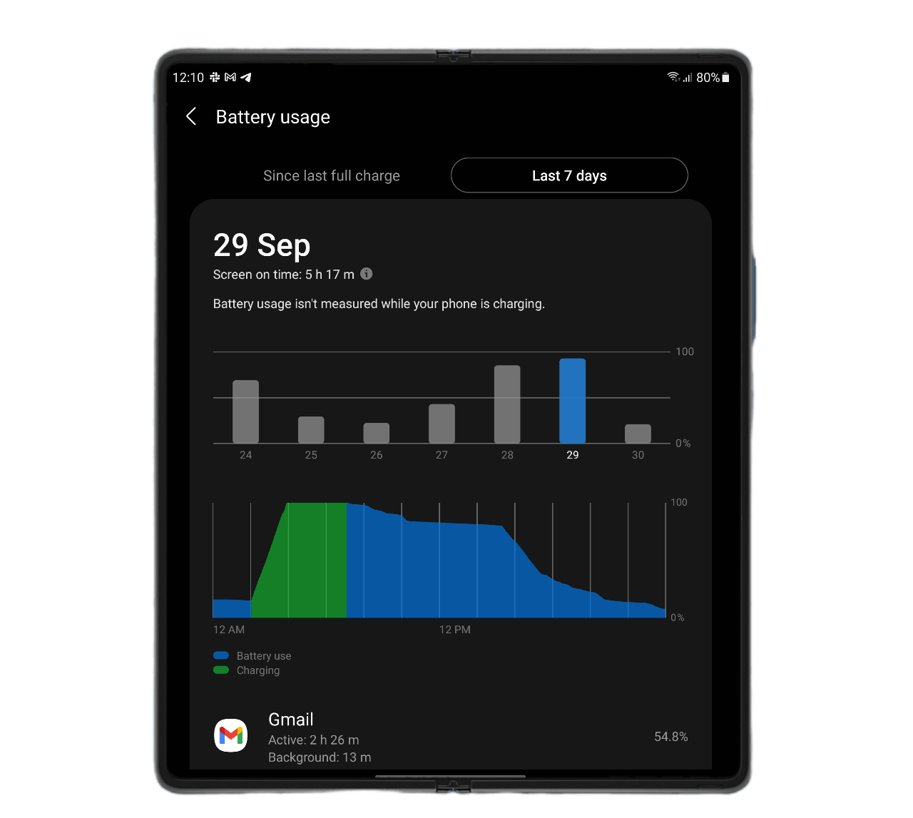 Overall, my usage was really irresponsible, battery-wise. The two screens in 120 Hz, the Always On Display activated at all times, and using it mainly in tablet mode (more battery consuming) with plenty of video calls and gaming. But it must be recognized that these figures are still below what is available on the high-end market. You simply cannot squeeze out more than a day’s worth of use on a single charge.