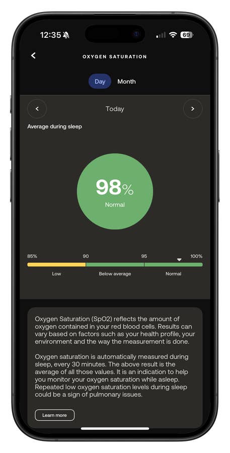 In addition to this score, the Scanwatch Nova with the Plus subscription also displays the estimated VO2max. This is determined during workouts, so it changes slightly depending on the activity and is again put into a very clear ratio. This allows us to compare ourselves with other age groups or try to compare ourselves with a 26-year-old professional cyclist who is particularly athletic. To provide a little more motivation, the Withings app also tells us how much we can improve our VO2 max if we were to indulge in more sporting activities. What bothered me a little was how external factors, such as the weather, were not taken into account. A 10 km jog at a 5:34 pace, which is quite brisk by my standards, resulted in a pretty poor fitness level for me. The fact that the temperature was over 25 degrees naturally demanded more from my body than a similar performance in winter. So you shouldn’t let the score demotivate you.
