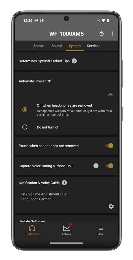 The Sony WF-1000XM5 can be operated with the Sony Headphones Connect application. It is available free of charge on Android and iOS. It is very, if not too, complete. But you need to create a Sony account to be able to use all the features.