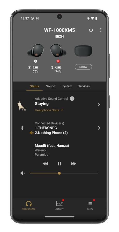 The Sony WF-1000XM5 can adapt the degree of ambient noise according to your environment