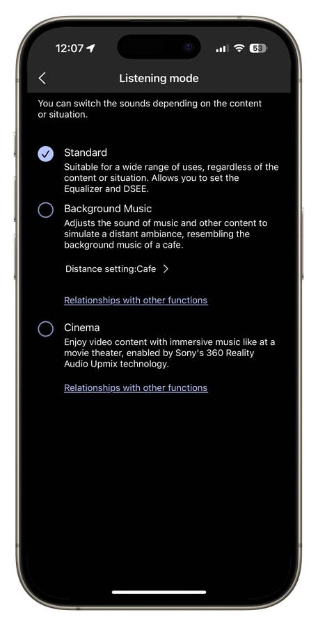 In addition to the technical features, Sony’s latest headphones also come with the usual sound optimization functions that we already know from previous models. These include DSEE Extreme, which can now use AI to extend the frequency response of lower-quality music. I couldn’t hear any real difference in reality.