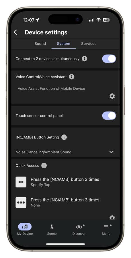 In addition to the control options on the headphones themselves, the WH-1000XM6 also offers “invisible” control options. Together with the newly developed companion app, the headphones can automatically control functions such as transparency mode or ANC. This allows the headphones to react when you speak or are spoken to. Since even clearing your throat or coughing is recognized as talking, I deactivated the “Speak-to-Chat” option after two days.