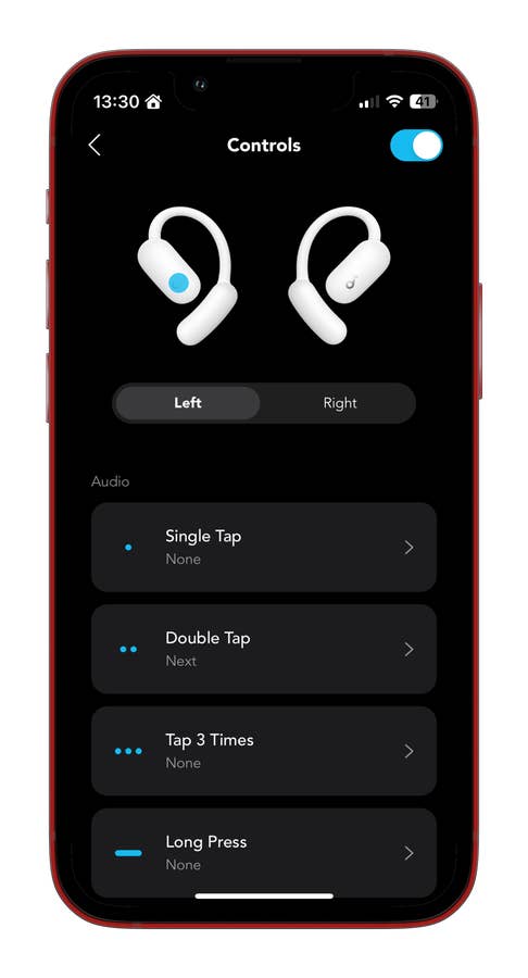 To use all the functions of the AeroFit 2, you should install the Soundcore app on your smartphone. This free application is available for both iOS and Android smartphones. It is particularly intuitive and offers a pretty design that matches the design language of the earbuds. There are hardly any comfort functions—there is no wear detection, but there is dual pairing and a gaming mode for low latency situations.