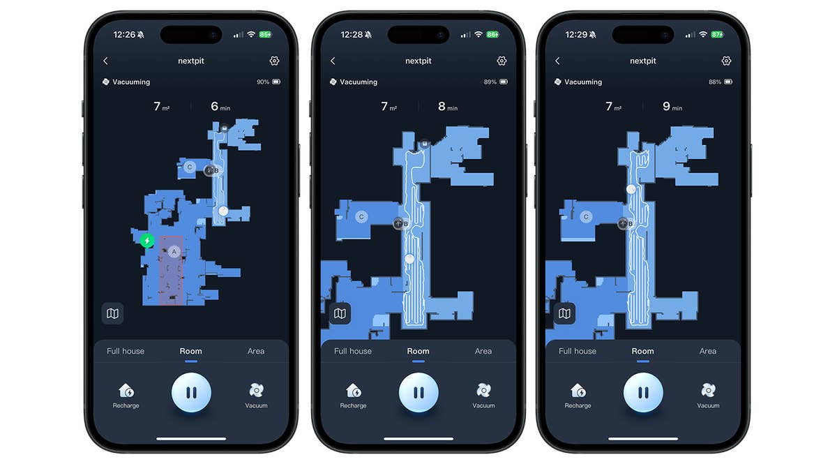 During the cleaning tour, the app shows the live location of the robot vacuum cleaner. It also provides information such as the cleaning duration and how much living space has been cleaned.