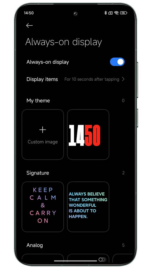 On the other hand, I think it’s a shame that I can’t add widgets to my lock screen. Wallpaper and clock, nothing more. As for the Always on Display, it’s not really customizable.